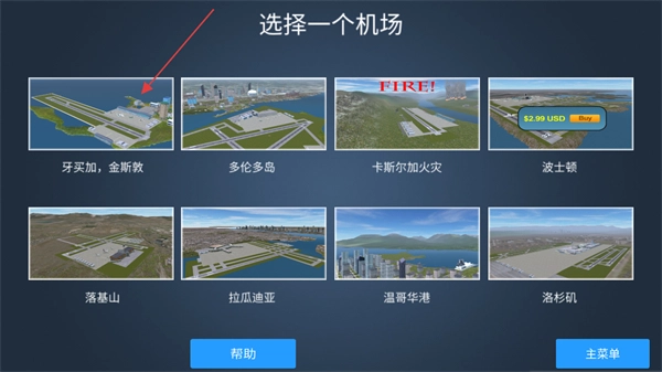1、打開(kāi)機(jī)場(chǎng)游戲后,挑選一個(gè)飛機(jī)場(chǎng)進(jìn)入游戲模式的選擇界面。