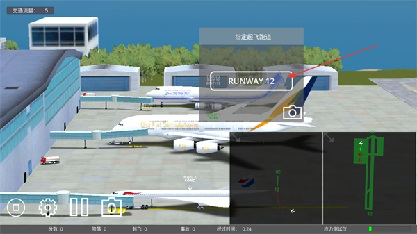 2、在飛機(jī)場(chǎng)內(nèi)可以點(diǎn)擊??康娘w機(jī),設(shè)置指定起飛跑道進(jìn)行起飛。