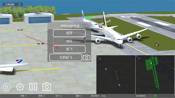 3、點(diǎn)擊進(jìn)入跑道的飛機(jī)彈出菜單,可以選擇飛機(jī)將要執(zhí)行的指令。