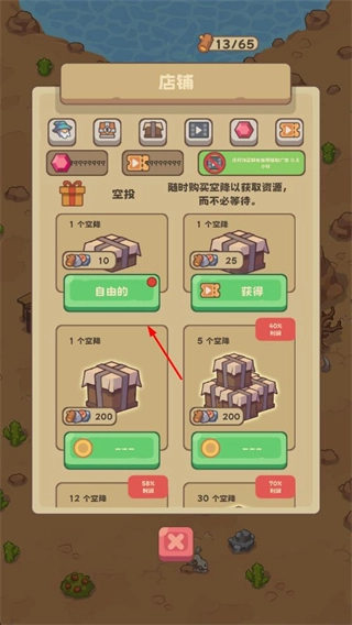 2、在店鋪界面,消耗資源自由獲取空投道具,空投可提供生存資源,助力設(shè)施制作與升級。
