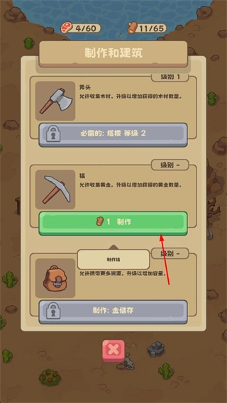 4、在制作與建筑的界面中,消耗資源來制作工具,這些工具能夠提高資源的收集效率,從而為后續(xù)設(shè)施的升級提供基礎(chǔ)材料支持。