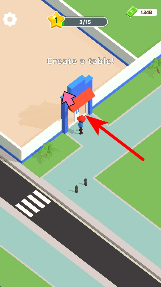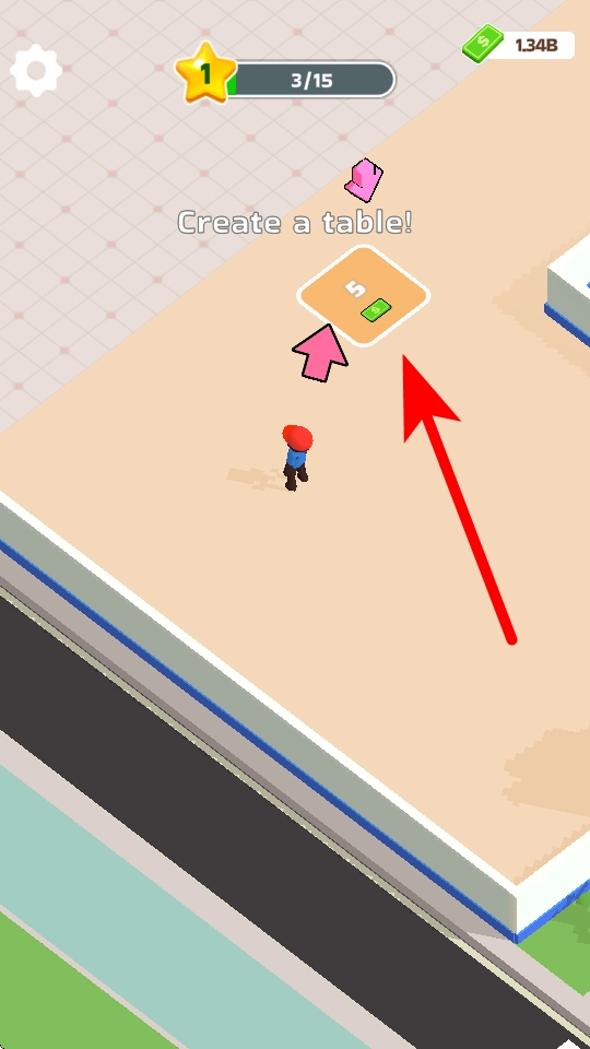 1、按照界面提示點(diǎn)擊箭頭所指的建筑區(qū)域,即可進(jìn)入設(shè)施升級(jí)操作界面,這是開啟店鋪設(shè)施升級(jí)的關(guān)鍵步驟,進(jìn)入該界面后能夠解鎖桌子等基礎(chǔ)經(jīng)營(yíng)設(shè)施,為后續(xù)的升級(jí)工作奠定基礎(chǔ)。