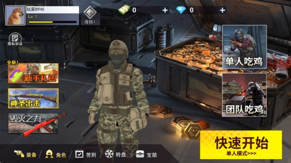 2.如下圖所示,玩家可以選擇單人吃雞或是團(tuán)隊吃雞進(jìn)行挑戰(zhàn)。