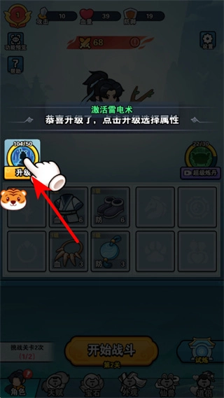 3、角色升級后,點擊升級按鈕選擇屬性加點,通過提升對應(yīng)屬性如攻擊、防御,進(jìn)一步強化角色的戰(zhàn)斗面板,為后續(xù)關(guān)卡鋪墊優(yōu)勢。