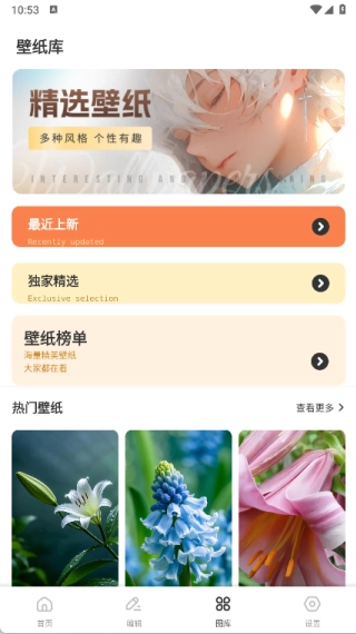4、在圖庫頁面中提供了最近上新、獨(dú)家精選、壁紙榜單以及熱門壁紙等信息。
