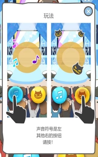 1、游戲的玩法非常簡單,就是當女孩身邊出現(xiàn)聲音的符號,那么就點左邊的按鈕,而除聲音符號之外的都按右邊的按鈕。