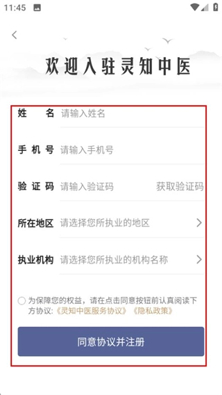 3、在注冊頁面,填寫信息并勾選協(xié)議后,完成注冊操作。