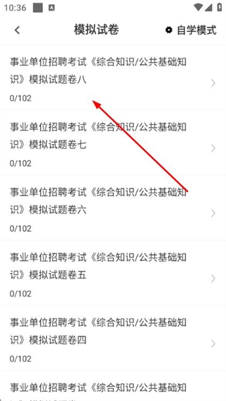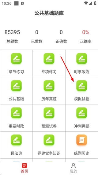1、在首頁(yè)點(diǎn)擊模擬試卷選項(xiàng),進(jìn)入模擬試卷列表頁(yè)面。