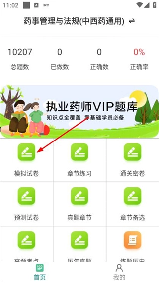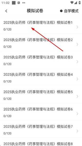 1、在題庫首頁點擊模擬試卷選項,進入模擬試卷列表頁面。