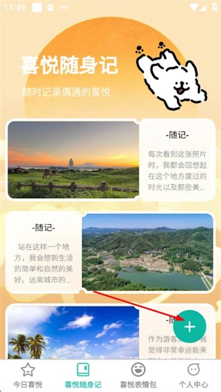 2、在喜悅隨身記頁面點擊右下角的添加按鈕,進入隨記編輯頁面。