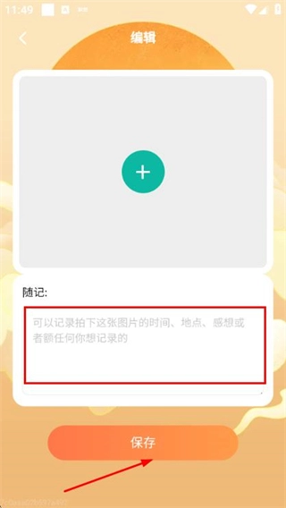 3、在編輯頁面的隨記輸入框填寫內(nèi)容后,點擊保存按鈕,完成隨記的添加操作。