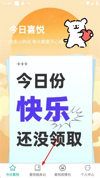 1、在今日喜悅頁面點擊底部的喜悅隨身記選項,進入喜悅隨身記頁面。