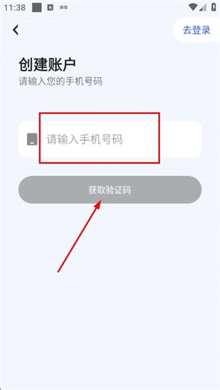 2、在注冊賬號頁面手機號碼輸入框填寫號碼后,點擊獲取驗證碼按鈕。