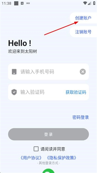 1、在登錄頁面點擊右上角創(chuàng)建賬戶選項,進入注冊賬號頁面。