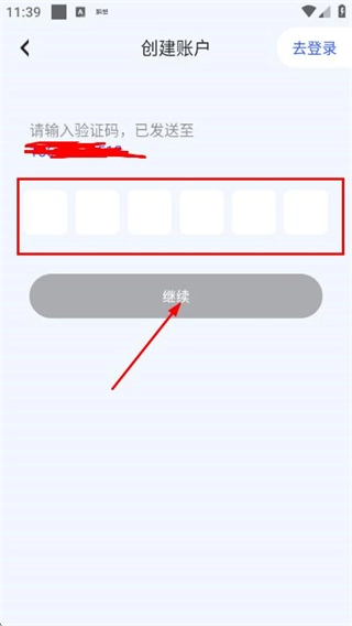 3、在注冊賬號頁面填寫驗證碼后,點擊繼續(xù)按鈕完成賬號注冊操作。