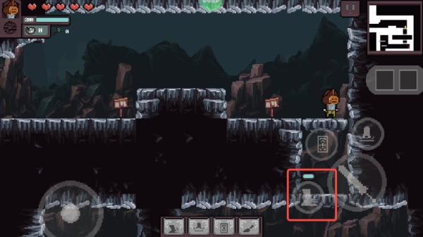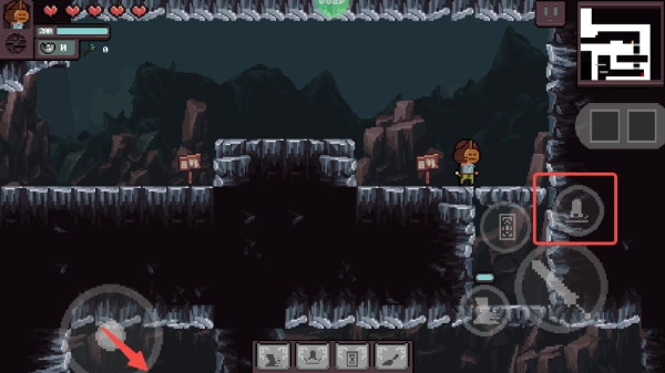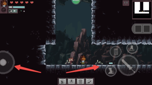 3、當(dāng)遇到圖示的單向障礙物,滑動搖桿向下同時(shí)點(diǎn)擊跳躍鍵可穿越障礙物;