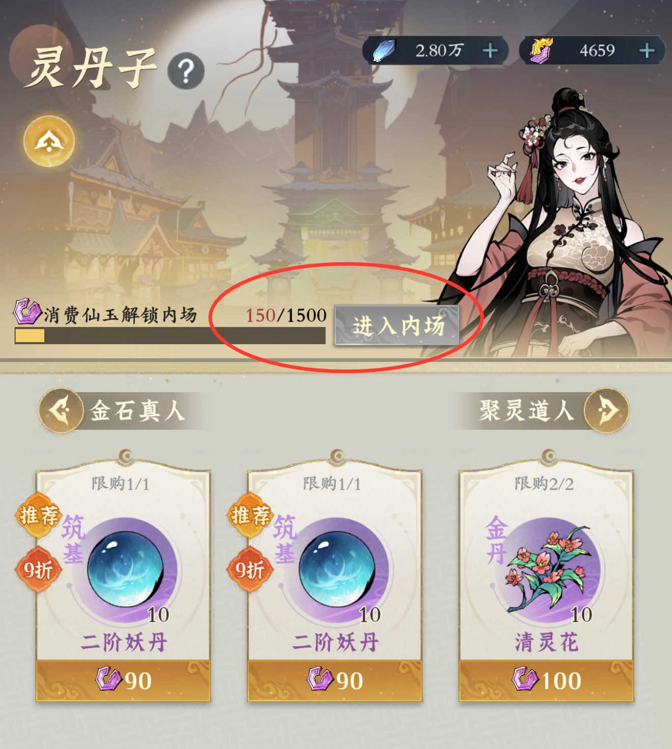 3. 利用仙坊資源:每天在仙市坊購買丹藥、藥材和聚靈石等資源,消費(fèi)滿1500仙玉可進(jìn)入內(nèi)場,內(nèi)場有大量丹藥和高性價(jià)比的1折聚靈石出售。