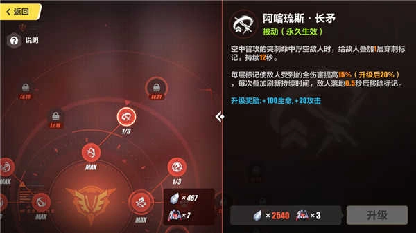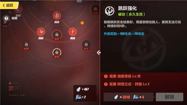 下面一欄的話可以考慮點(diǎn)出“跳躍強(qiáng)化”反擊后對(duì)敵人施加脆弱狀態(tài)提高全傷害。