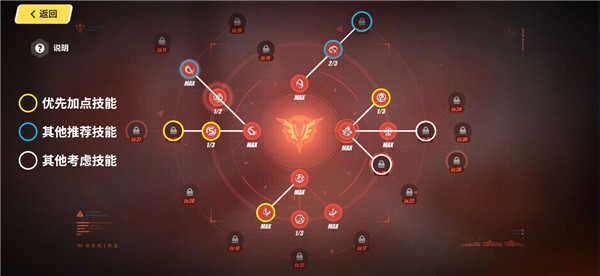 因?yàn)樯?jí)技能的獎(jiǎng)勵(lì)都是一樣的,所以優(yōu)先點(diǎn)出哪個(gè)技能都是可以的,并沒有固定的路線。