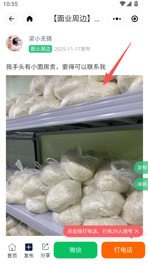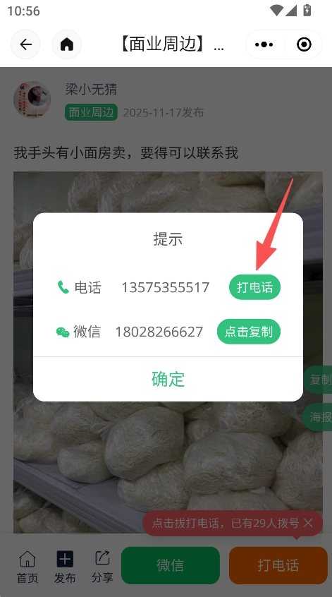 3、擁有聯(lián)系方式獲取功能,點擊撥打電話即可查看對應(yīng)的聯(lián)系方式,助力面坊行業(yè)實現(xiàn)順暢的溝通對接。