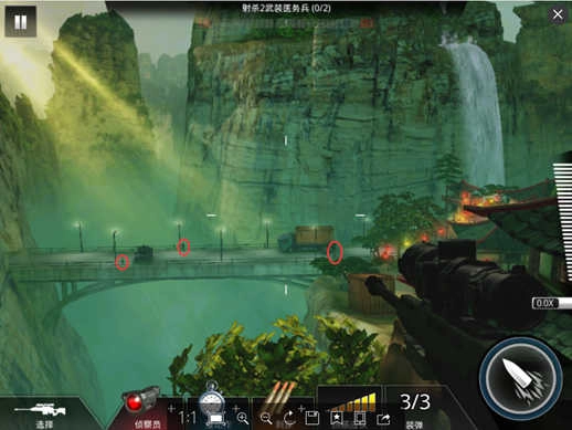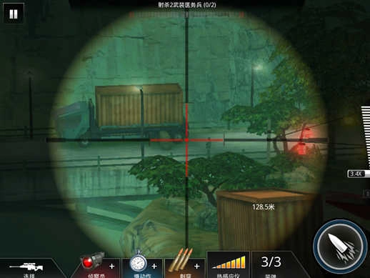 沒錯(cuò),這也就說明了,該關(guān)卡除了有兩個(gè)目標(biāo)敵人外,還有另外一個(gè)敵人,那就是狙擊手了(萬惡的狙擊手,這也是另該關(guān)卡難題提升的原因。那么,我們要怎么完成任務(wù)呢?