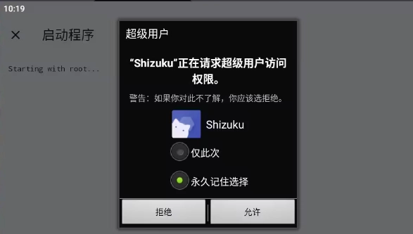 2、一堆指令閃過之后,可以看到Shizuku正在運行