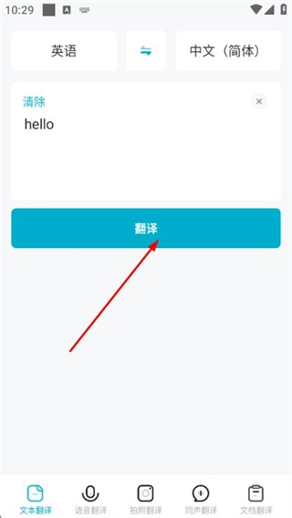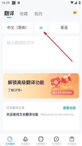 1、在翻譯頁(yè)面點(diǎn)擊語(yǔ)言切換按鈕,調(diào)整翻譯的源語(yǔ)言與目標(biāo)語(yǔ)言。