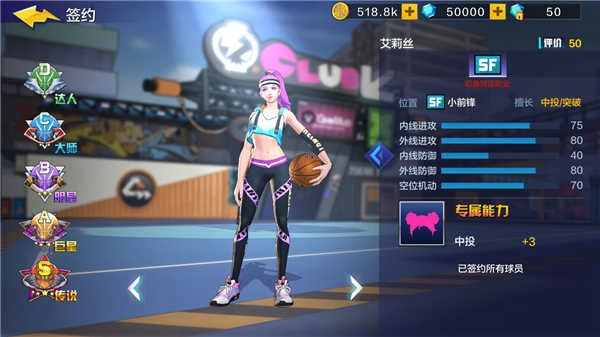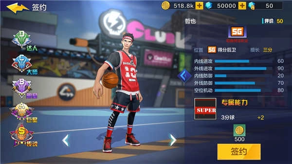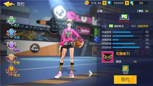 PG(控球后衛(wèi)):PG是全隊(duì)進(jìn)攻的組織者,對球場的全局有更敏銳的觀察。選擇“上籃強(qiáng)化+假投真?zhèn)鳌保圃旒賱?dòng)作騙過對手視線,出其不意、輕松得分。