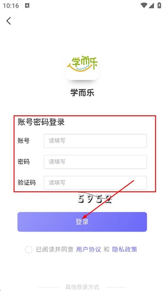 3、在賬號密碼登錄頁面,依次填寫賬號、密碼、對應(yīng)驗證碼,點擊登錄,完成賬號登錄。