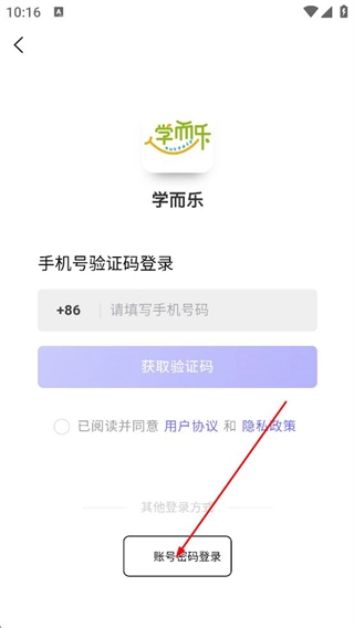 2、在手機(jī)號驗證碼登錄頁面,點擊賬號密碼登錄選項,切換到賬號密碼登錄頁面。