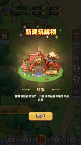 4、當(dāng)完成第一個(gè)主線任務(wù)之后,就會(huì)解鎖新建筑旅館,就可以招募冒險(xiǎn)者了。