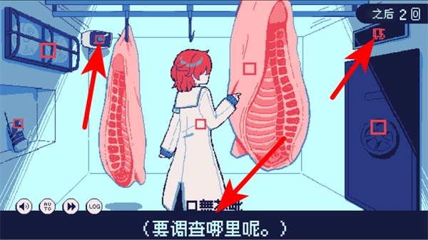 3、在房間內(nèi),依次調(diào)查肉、門等區(qū)域,推進探索流程。