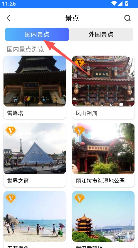 2、在景點(diǎn)頁(yè)面選擇國(guó)內(nèi)景點(diǎn)分類(lèi)。