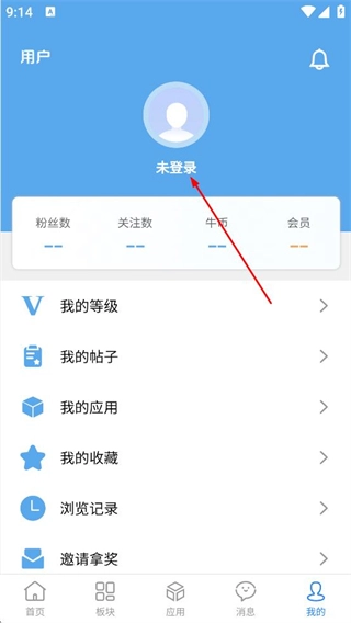 2、在個人頁面,點(diǎn)擊未登錄區(qū)域,進(jìn)入登錄頁面。
