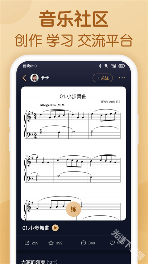 【大眾音樂學(xué)習(xí)交流】在音樂理解的過程里,您既能夠把自己的樂譜分享給其他用戶,也可以借助其他用戶分享的音樂,一同開展學(xué)習(xí)與交流。