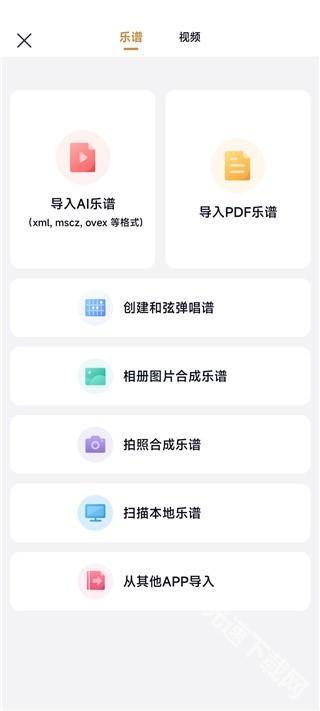 6、點(diǎn)擊中間的加號(hào),這里可以導(dǎo)入本地樂譜和練習(xí)視頻;