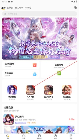 2、在首頁瀏覽推薦游戲,找到感興趣的如【凡人飛劍】點擊進(jìn)入詳情頁。
