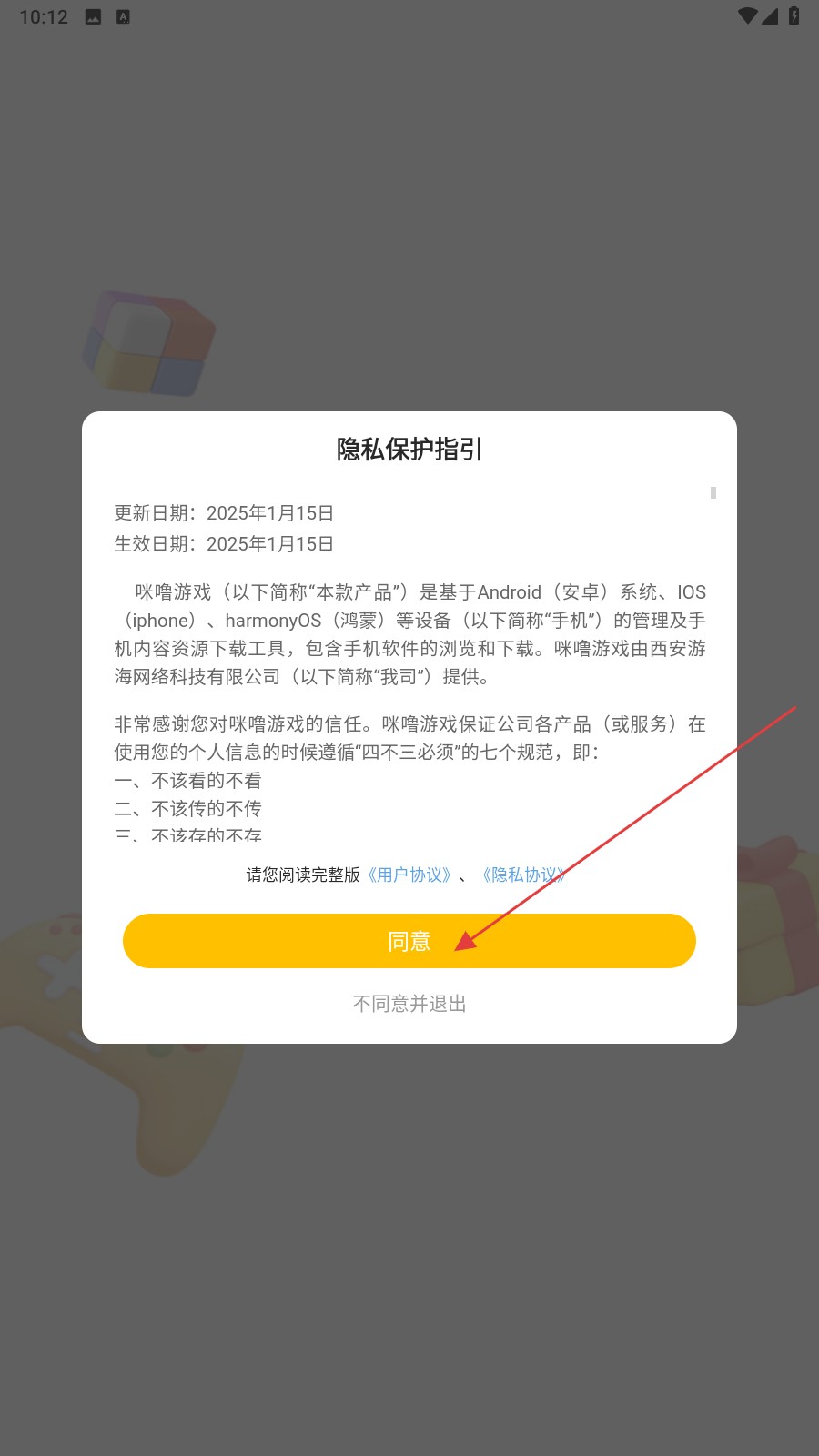 1、啟動應(yīng)用,仔細(xì)閱讀《隱私保護(hù)指引》后,點擊“同意”按鈕進(jìn)入應(yīng)用。