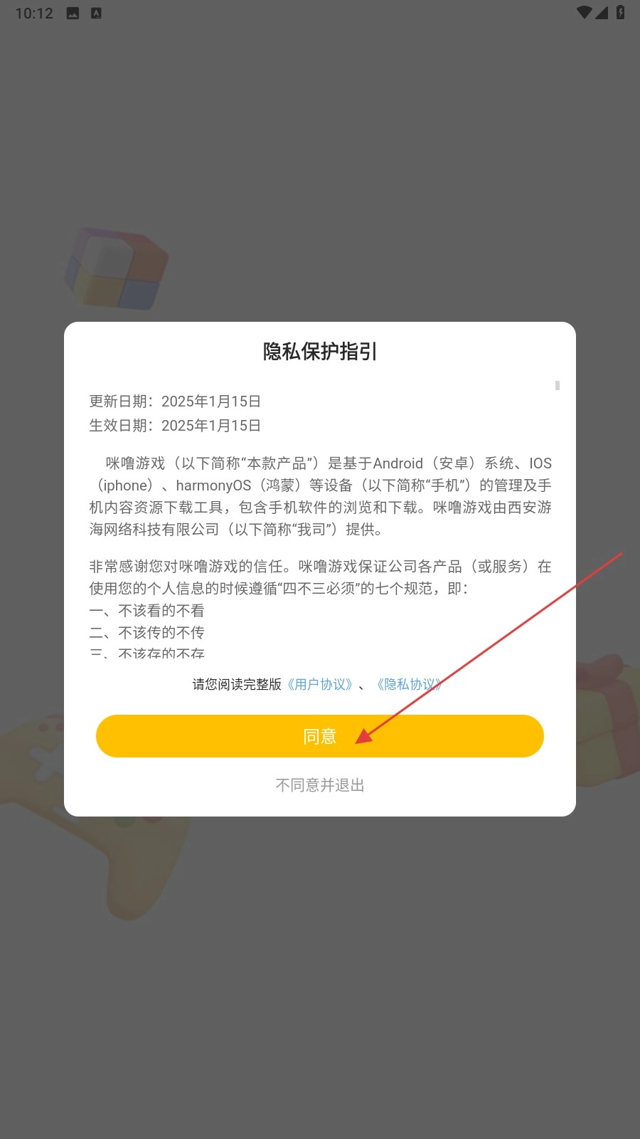 1、啟動應用,仔細閱讀《隱私保護指引》后,點擊“同意”按鈕進入應用。