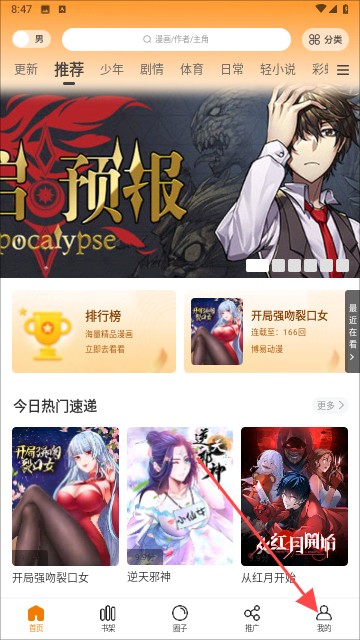 1、打開(kāi)酷比漫畫(huà),點(diǎn)擊右下角我的
