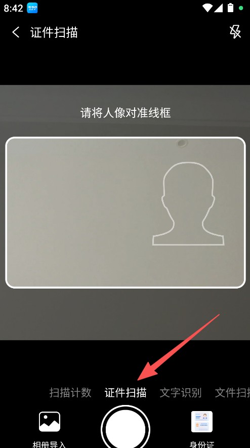 2、進(jìn)入證件掃描界面,對準(zhǔn)人像后點擊拍攝按鈕。