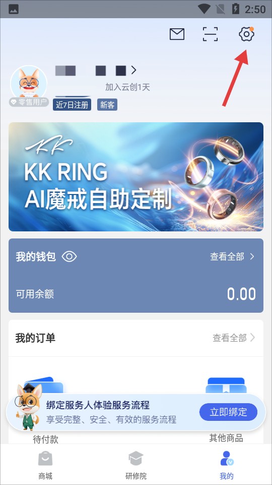 1、進(jìn)入個(gè)人頁面,點(diǎn)擊右上角設(shè)置圖標(biāo)。