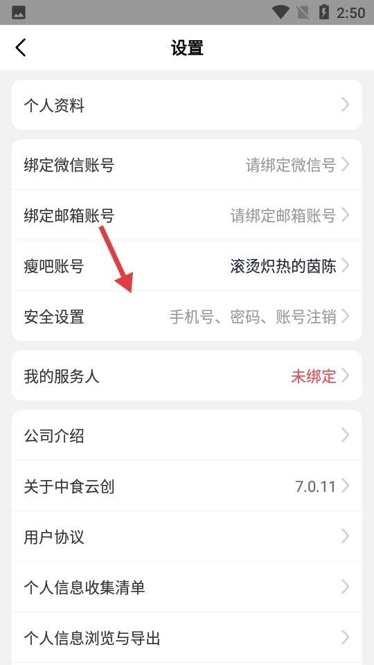 2、在設(shè)置界面點(diǎn)擊【安全設(shè)置】,進(jìn)入安全設(shè)置頁面。