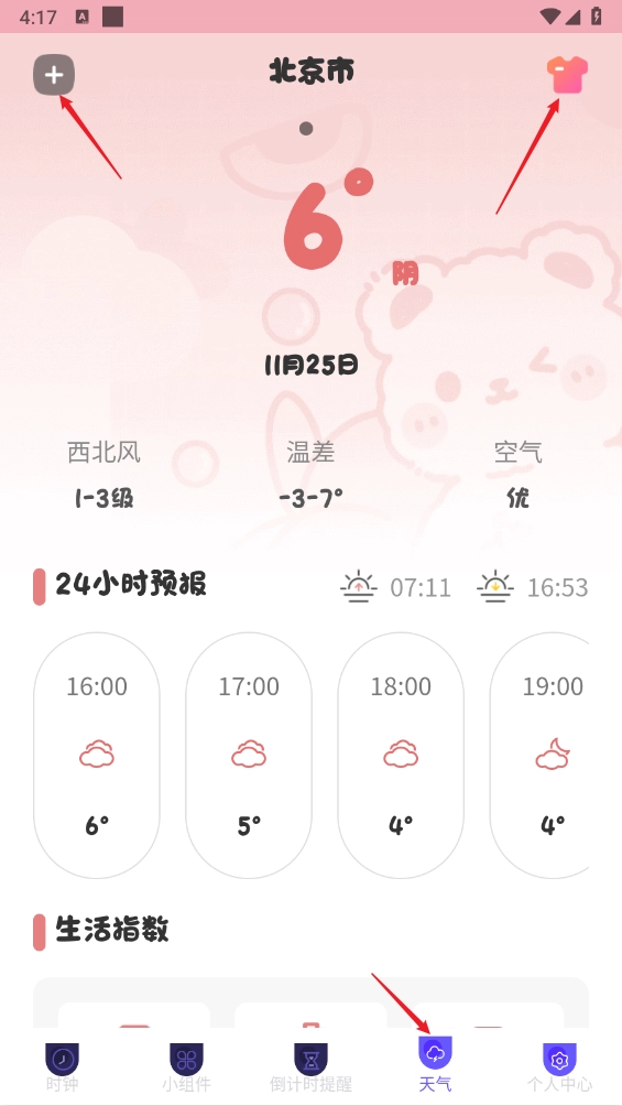 5、也能在“天氣”欄目里查看對應(yīng)的天氣情況,左上方還支持添加多個(gè)城市。