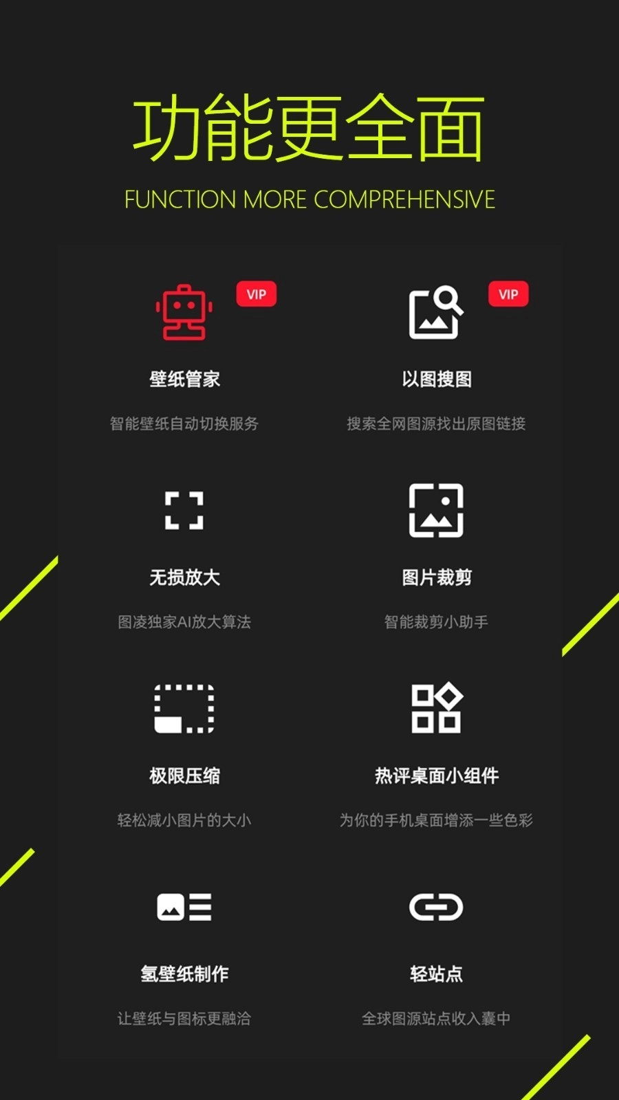 2、例如,無(wú)損放大、極限壓縮等。圖靈壁紙還為用戶提供了一些實(shí)用的小功能,以保證圖片的質(zhì)量。