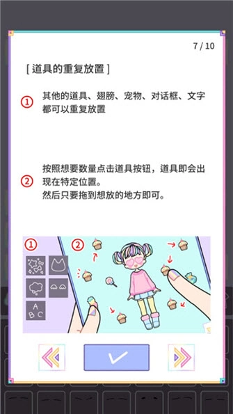 7、在粉彩女孩里,其他道具、翅膀、寵物、對話框、文字這些元素都能重復放置。你可以按照自己想要的數(shù)量點擊道具按鈕,點擊后道具就會出現(xiàn)在特定的位置,之后只要把它拖到你想放的地方就行啦。