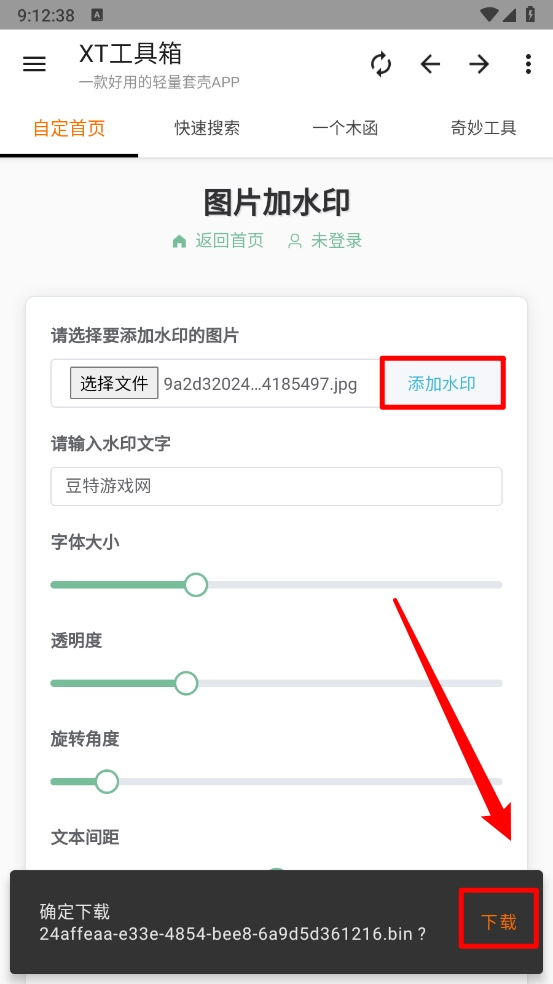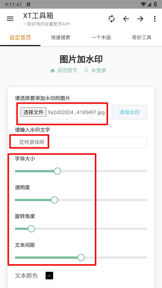 4、完成上傳后輸入水印的內(nèi)容,設(shè)置字體大小、透明度、顏色等。