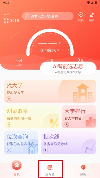 1、首先在安裝軟件,進(jìn)入后點(diǎn)擊"查專業(yè)"。