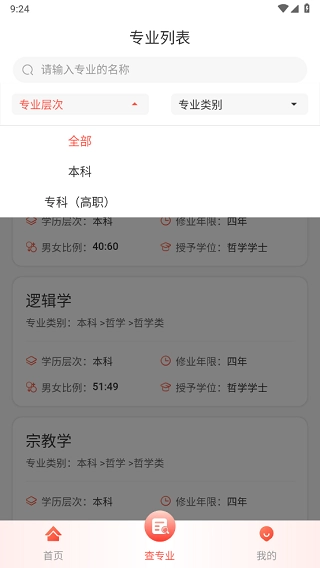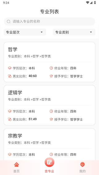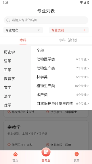 進(jìn)入后,你可以直接搜索專業(yè)名稱,也可以滑動(dòng)頁(yè)面來(lái)選擇對(duì)應(yīng)的專業(yè)。