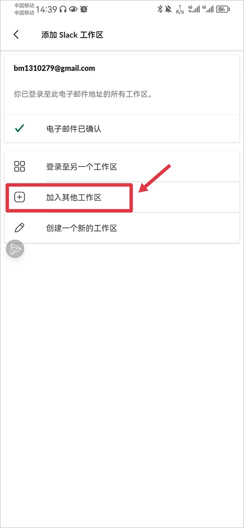 4、最后選擇你要使用的電子郵件地址,如果有管理員向你發(fā)送邀請時,當你使用該電子郵件進入后就會有邀請鏈接,點擊鏈接即可加入新的工作區(qū)